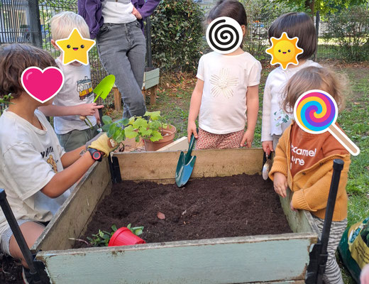 - Prendre soin et arroser le potager (fraisiers, ciboulette, menthe, fleurs).